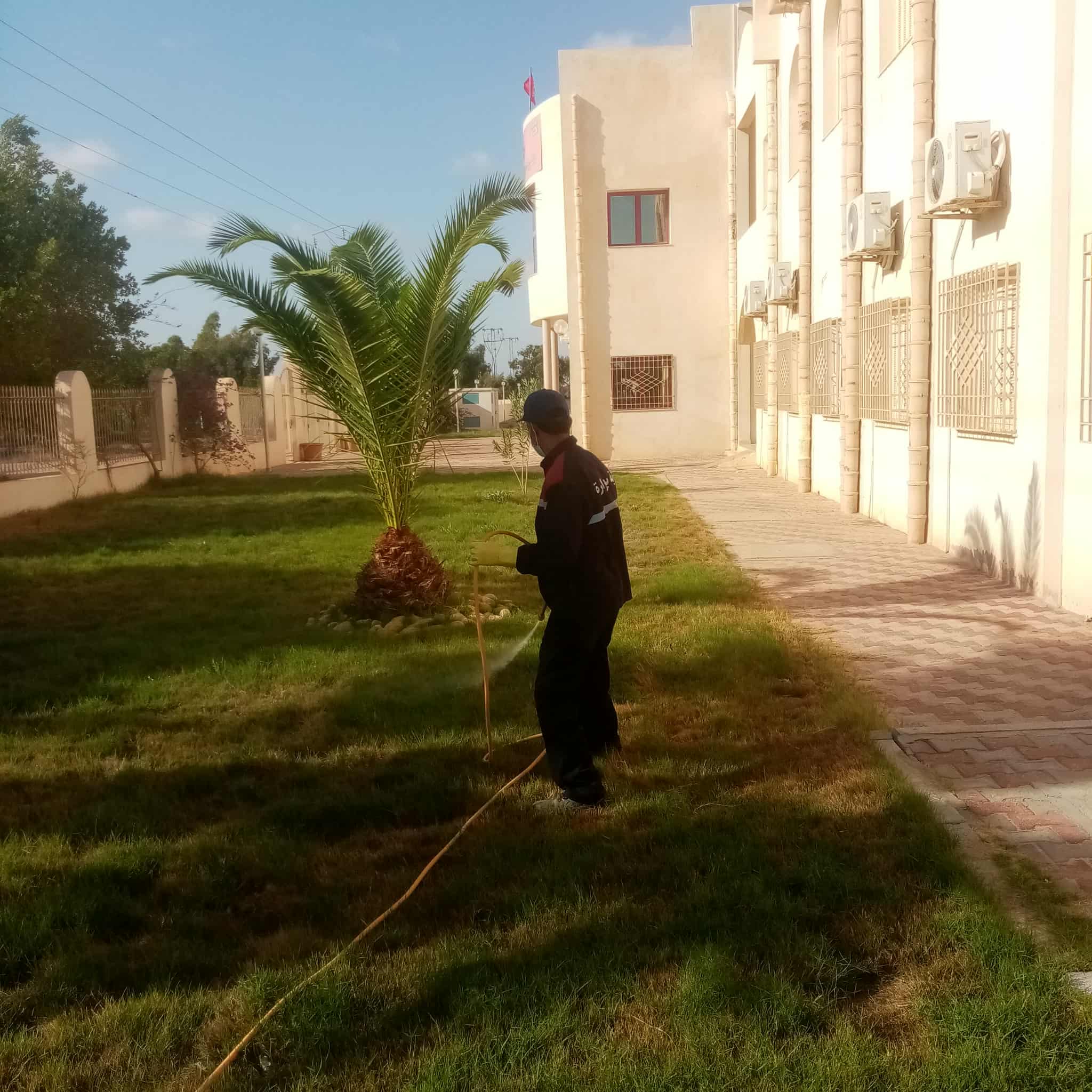 الانطلاق في عملية تهيئة المساحة الخضراء أمام المقر الجديد للبلدية و تعشيبها بالعشب الطبيعي