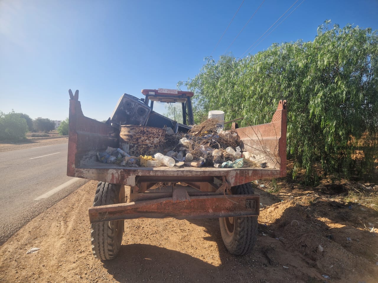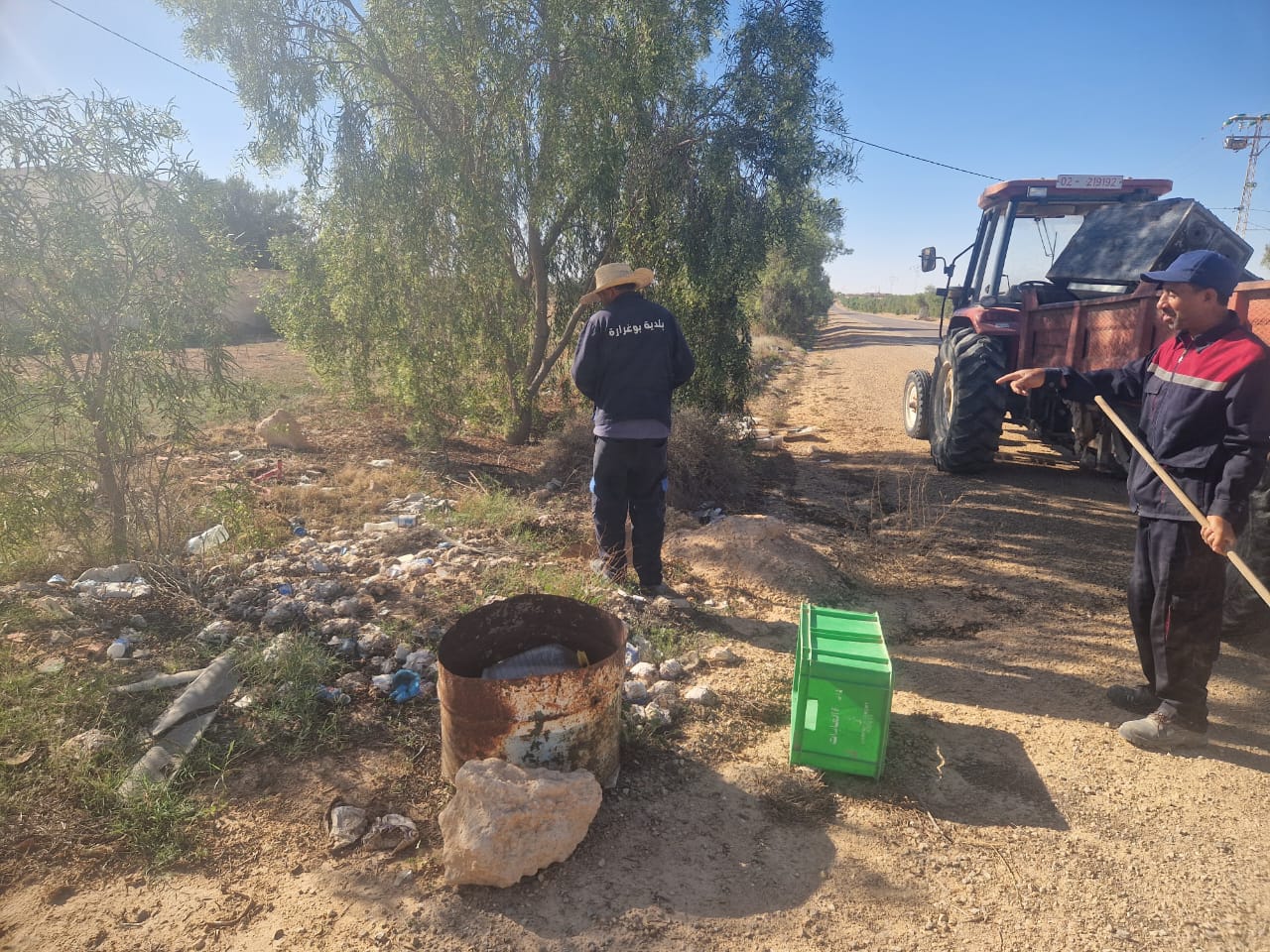 تدخل فريق النظافة على الطريق الجهوية عدد 108 من مفترق جكتيس إلى مفترق القرين