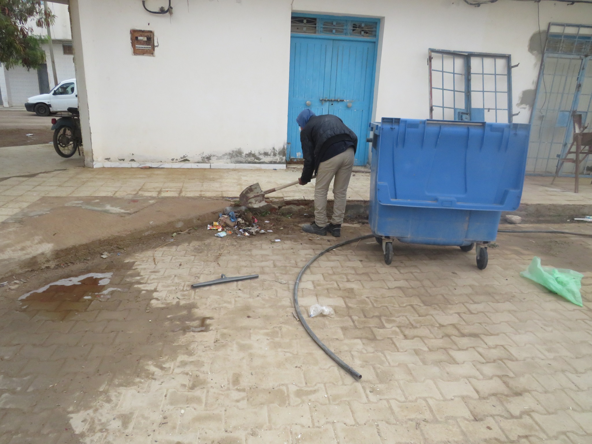 تدخل فريق النظافة في تنظيف الانهج