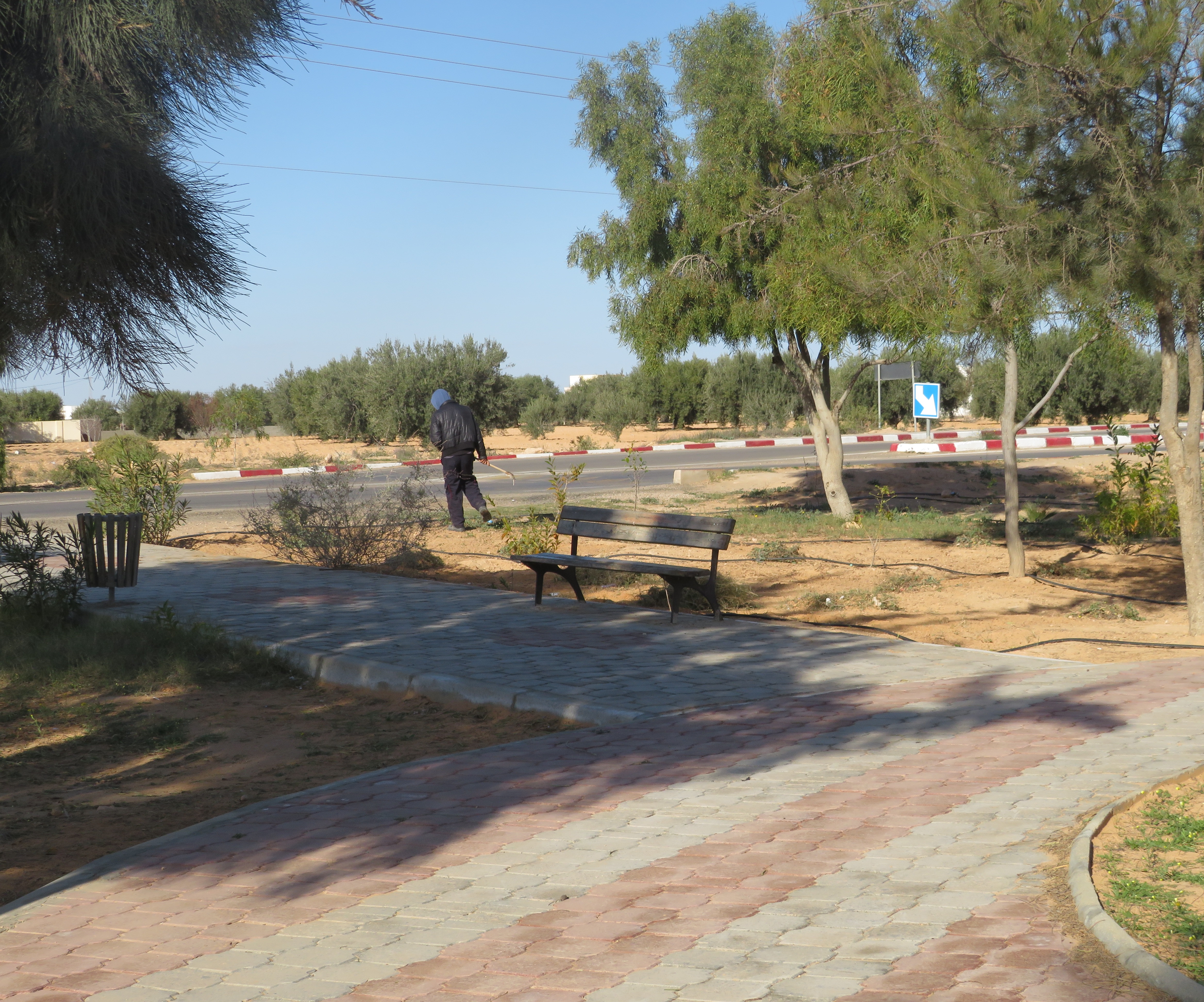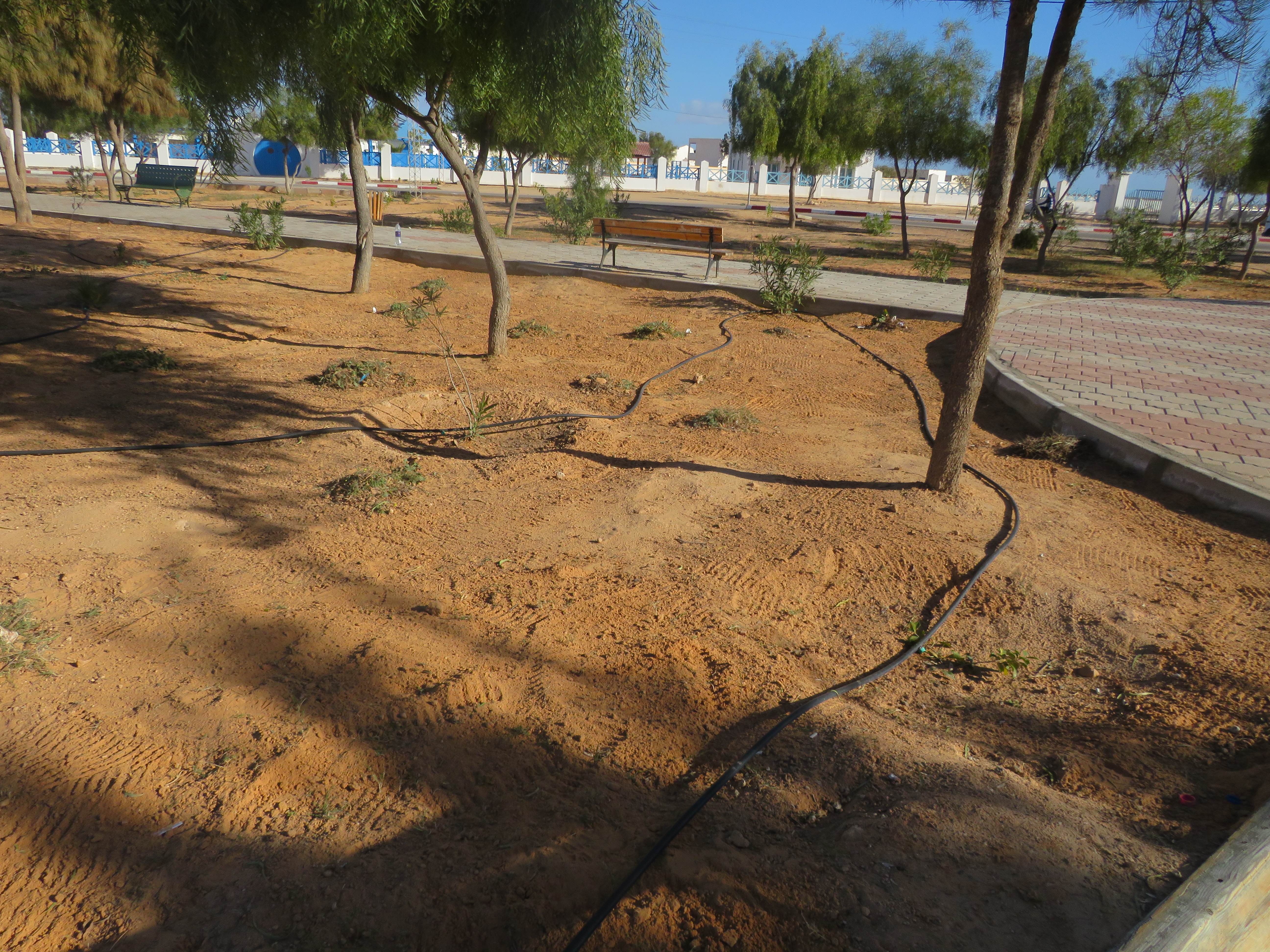 تركيز مجموعة من الكراسي و سلات لوضع الفضلات بالحديقة الكائنة أمام المركز الوسيط للصحة و بمحطة النقل و أمام المعهد الثانوي